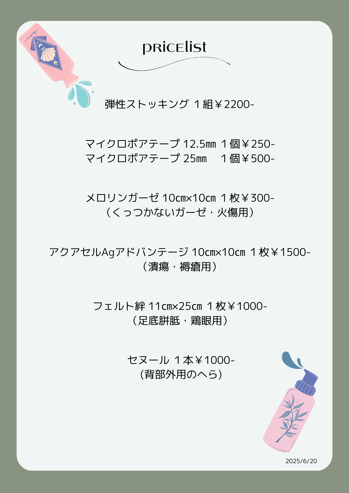 | 弾性ストッキング 1組 | ¥2200- |